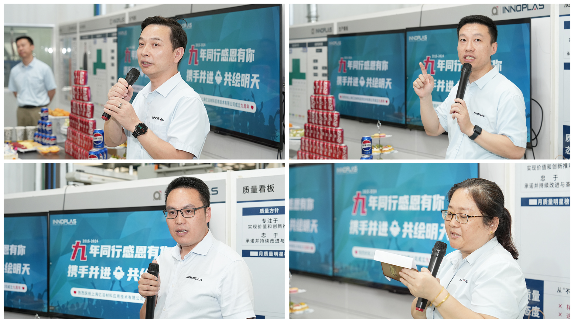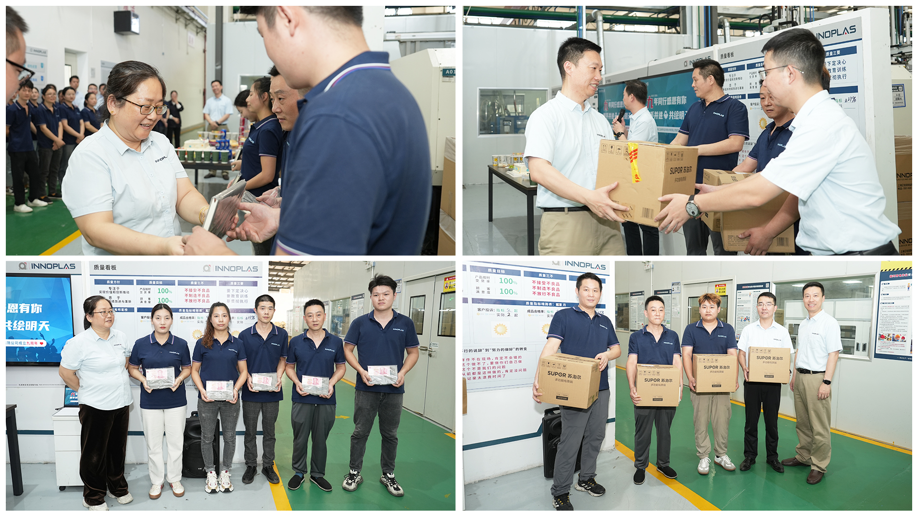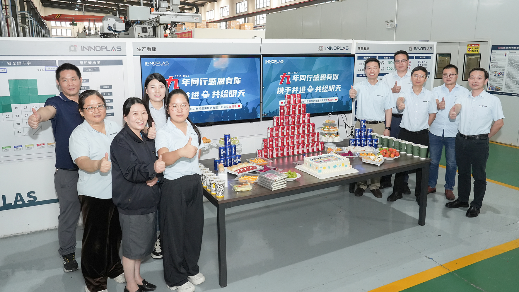 10月(yuè)19日(rì),億泊工(gōng)廠(chǎng)迎來(lái)她(tā)的(de)九周歲生(shēng)日★(rì),工(gōng)廠(chǎng)舉辦了(le)九周年(nián)廠(chǎng)慶活動。塑膠科(kē)技(₽jì)事(shì)業(yè)部總經理(lǐ)鄭亮(liàng),副廠(chǎng)長(cháng)陳勝望、李湘坤出席活動,億泊工(gōng)廠(chǎng)全體(tǐ)員(yuán↔)工(gōng)參加活動。